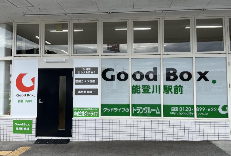 GoodBox.能登川駅前は24時間出し入れ自由で専用駐車スペースを完備。全て1階フロアで荷物の搬入出がスムーズです。遠隔システムを導入しており非接触でのご内覧が可能。0.5帖~5.4帖タイプのバラエティ豊かなトランクルームは、キャンプ用品やタイヤ、仕事の道具・材料など様々な収納にピッタリです。